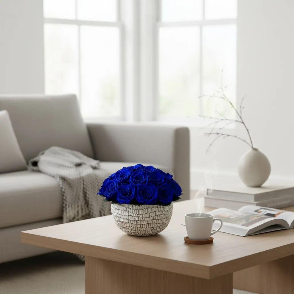 Ein langlebiges Rosenarrangement, das 2-3 Jahre bei richtiger Pflege hält – ideal als Geschenk oder stilvolles Wohnaccessoire.
